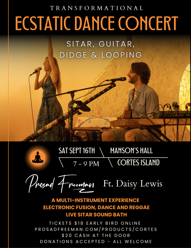 I am currently based on Cortes Island, BC until late Oct 2025. Please contact me if you want to infuse your events with music of a ceremonial or intentional nature. Or if you would like to bring your music to Cortes.